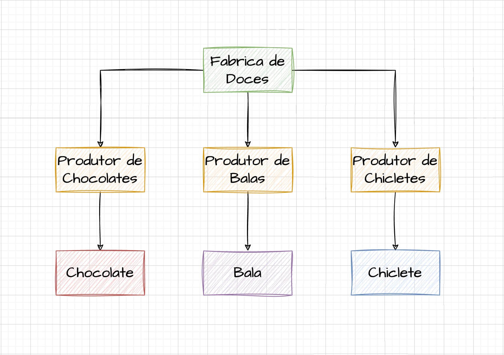 Exemplo: (Uma fábrica de doces que abriga produtores de chocolates, balas e chicletes.)