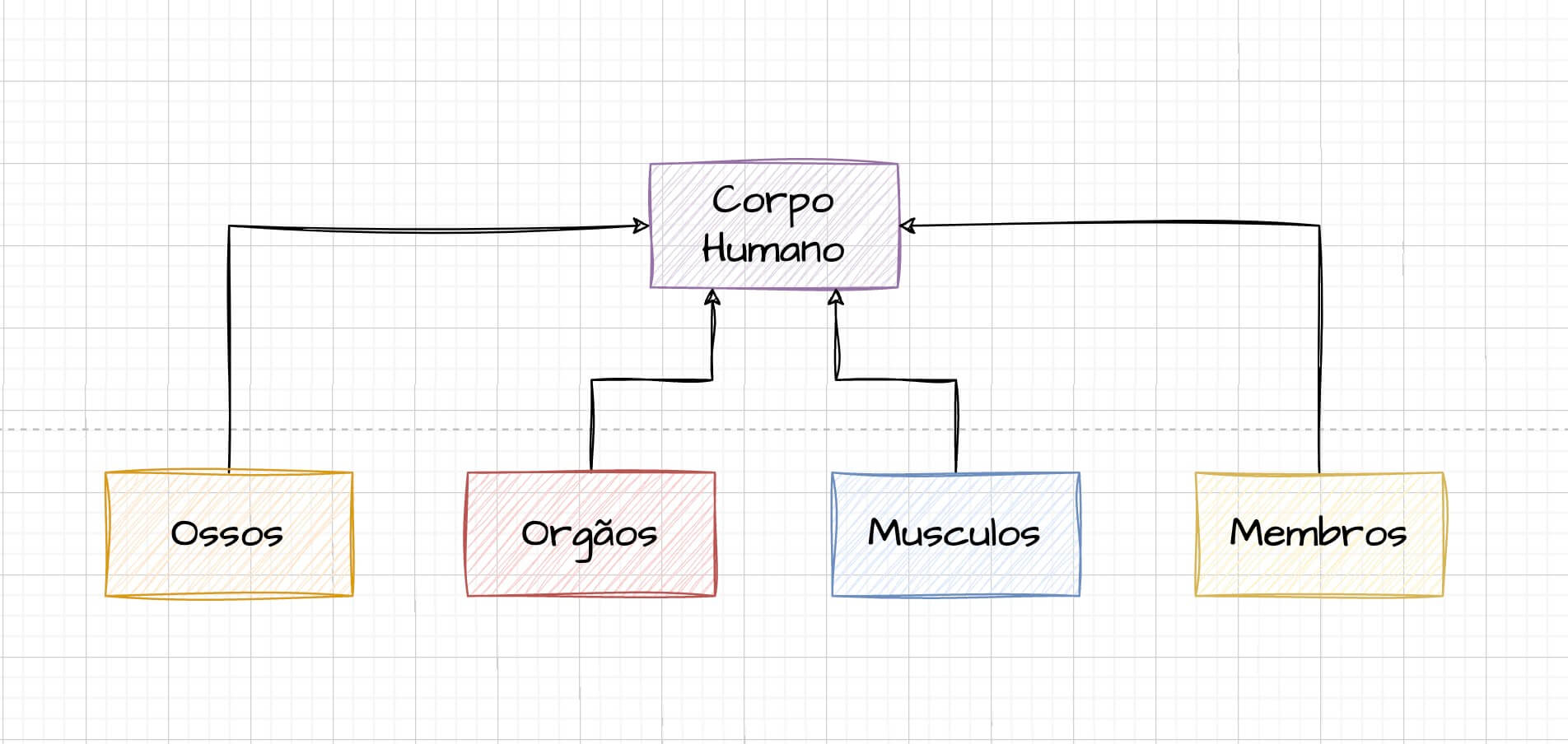 Exemplo: (O corpo humano é uma instância compartilhada por ossos, órgãos, músculos e membros.)