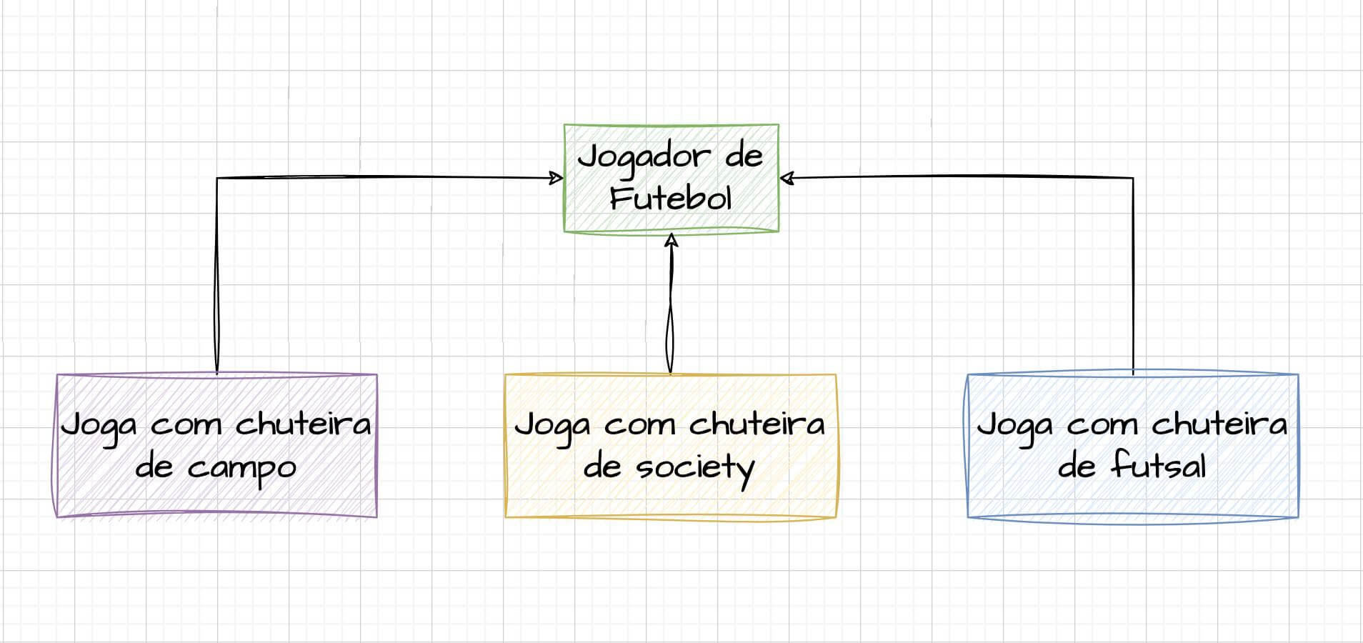 Exemplo: (Um jogador de futebol adquire características adicionais de acordo com o tipo de chuteira utilizada, o tipo de campo em que joga (gramado, society ou futsal) e as condições do ambiente).