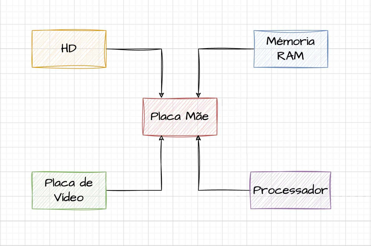 Exemplo: (Uma placa mãe recebe as conexões e dependências de outros periféricos, como HD, Memória RAM, Placa de Vídeo, Processador e etc)