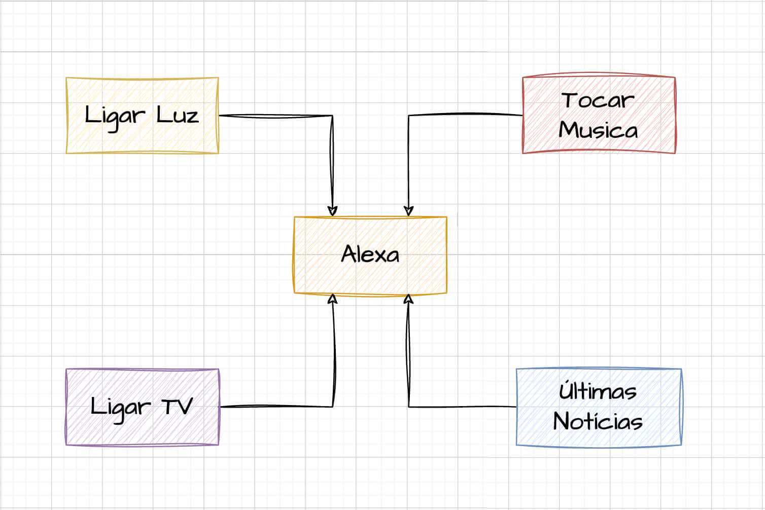 Exemplo: (A Alexa recebe comandos para executar diversas funções, tais como ligar a luz, tocar música, ligar a TV ou fornecer as últimas notícias)