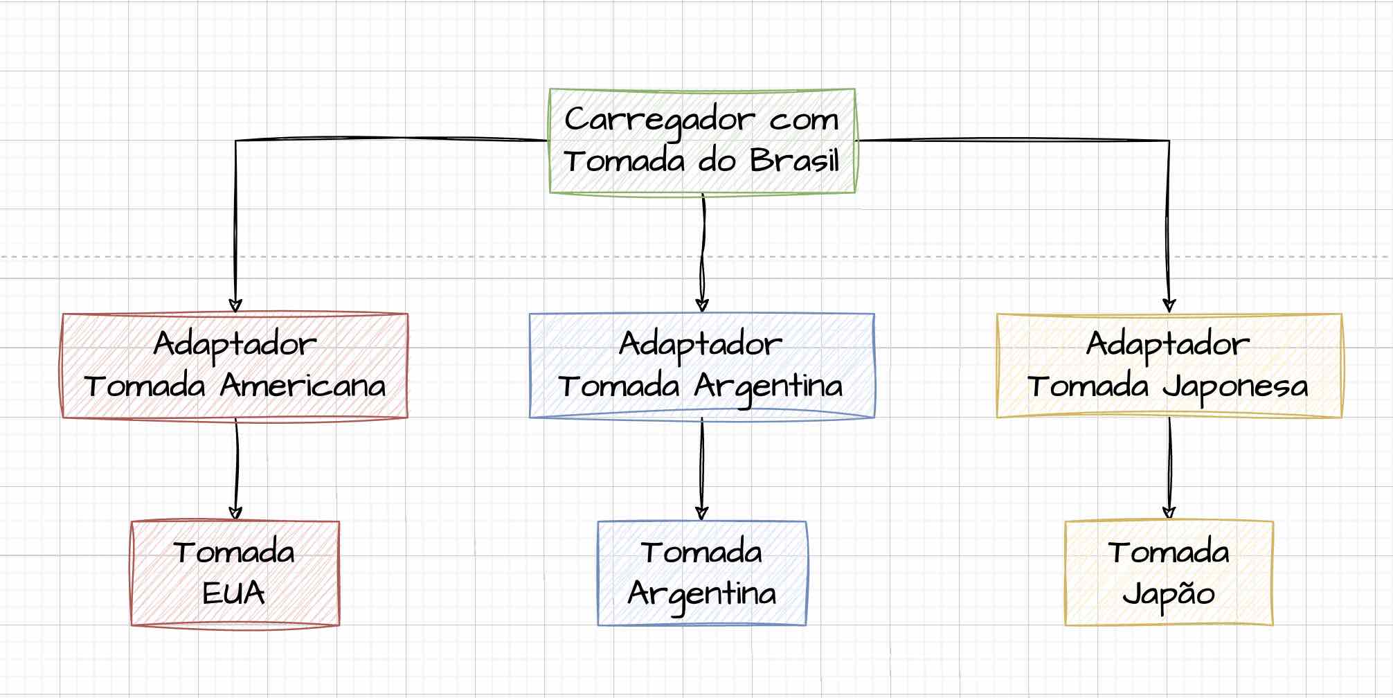 Exemplo: (Cada país possui seu próprio formato de tomada, o que requer o uso de um adaptador específico para utilizá-la.)
